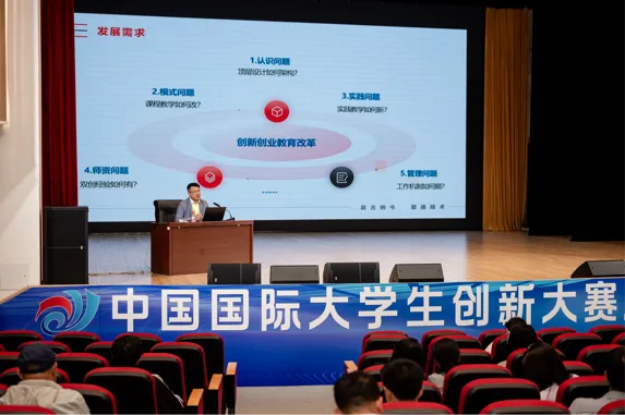 于澎院长在讲座中介绍了长春中医药大学构建的全程化、进阶式创新创业教育体系。学校严格落实深化创新创业教育改革要求,通过定期召开双创工作会议、出台配套制度、改革教学与学籍管理制度,并设立高水平竞赛奖金及在孵企业扶持经费,激发师生动力。于澎院长结合本次“建行杯”辽宁省大学生创新大赛(2025)省赛启动会暨师资培训班主题和近年来双创工作经验,对我校三项国金案例进行了深刻剖析和解读。这些金奖项目深度结合中医药特色与前沿需求,在系统化教育体系支撑下,通过课程赋能、平台锤炼、“赛-训-创”体系模式,实现了创意到市场/社会价值解决方案的跨越,是学校培养学生创新思维与实践能力成效的集中体现和成功范式。